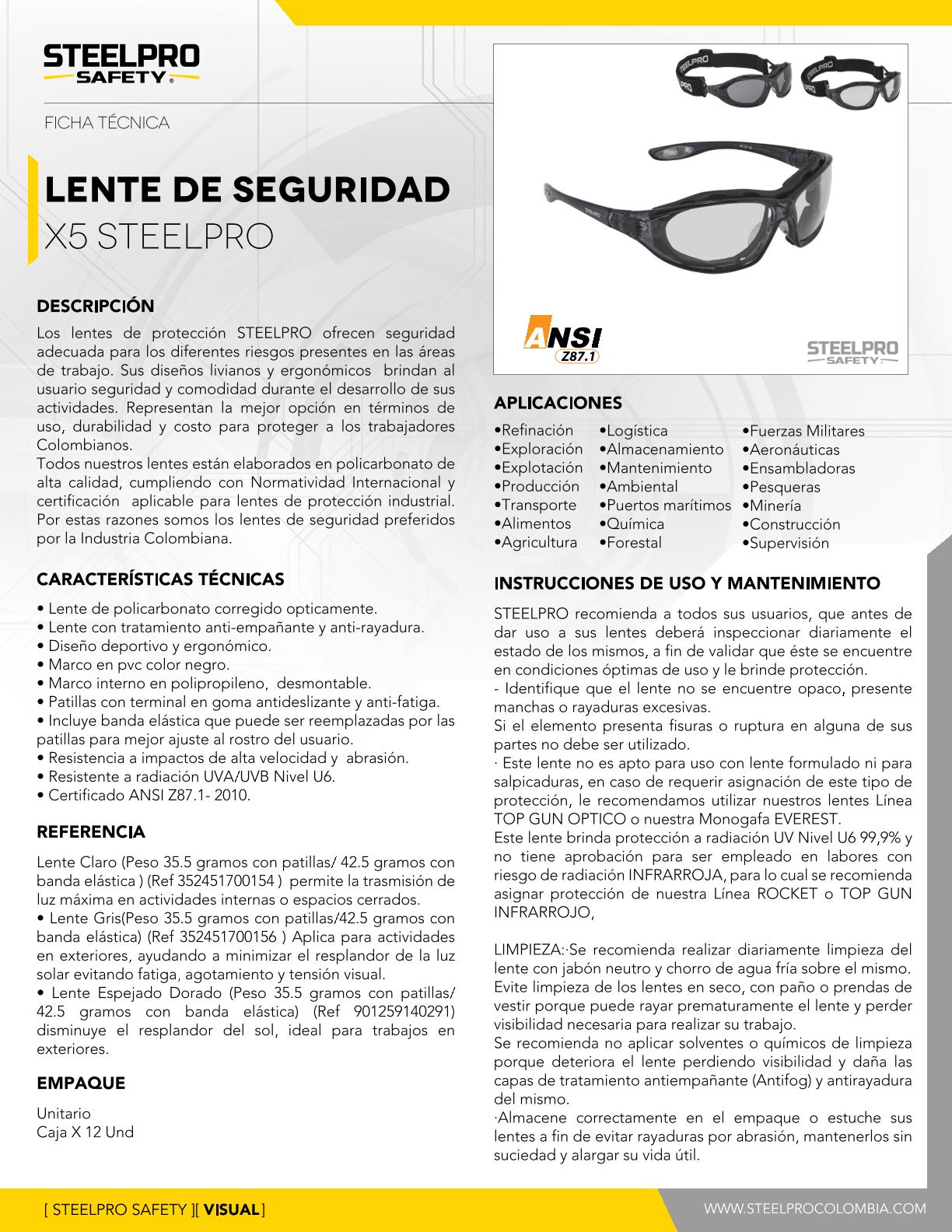 *Lente policarbonato corregido ópticamente*Con tratamiento anti-empañante (AF) y anti-rayadura*Diseño deportivo y ergonómico*Marco en PVC color negro*Marco interno en polipropileno, desmontable*Patillas con terminal en goma antideslizante y anti-fatiga*Incluye banda elástica cambiable por patillas para mejor ajuste al rostro*Resistencia a impactos de alta velocidad y abrasión*Resistente a radiación UVA/UVB Nivel U6*Certificado ANSI Z87.1-2010*EXENTO DE IVA