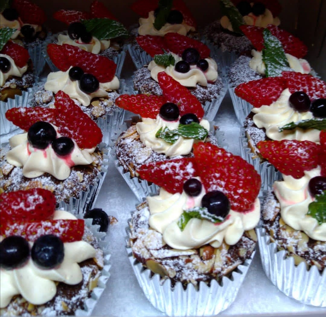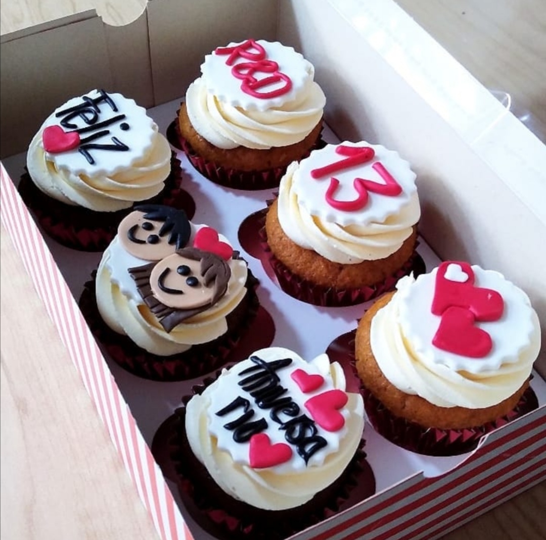 Cupcakes diseños Personalizados 6 por caja. Arandanos con almendras y crema de café. Chocochips semi amargo con agraz y crema de maracuyá. Chocolate con agraz, crema de limón y un toque de almendras.
